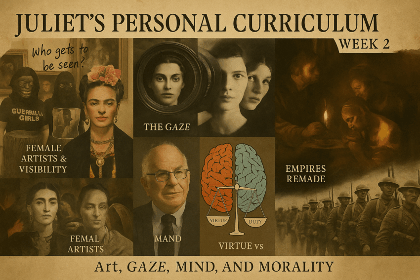 Bu haftanın kişisel müfredatını sizinle paylaşıyorum. Hafta bittiğinde okuduğum, izlediğim her şeyle ilgili bir özet geçip bu yazıyı genişleteceğim! Müfredatı belki takip etmek isteyen olur 🙂 Konularım temalar kısmında da görebileceğiniz gibi ; kadın tarihi, film analizi, psikoloji, sanat tarihi, felsefe, yaratıcı yazarlık ve yakın tarih & politika. Tablonun ingilizcesini de paylaşıyorum, çünkü bazı terim/deyimler…